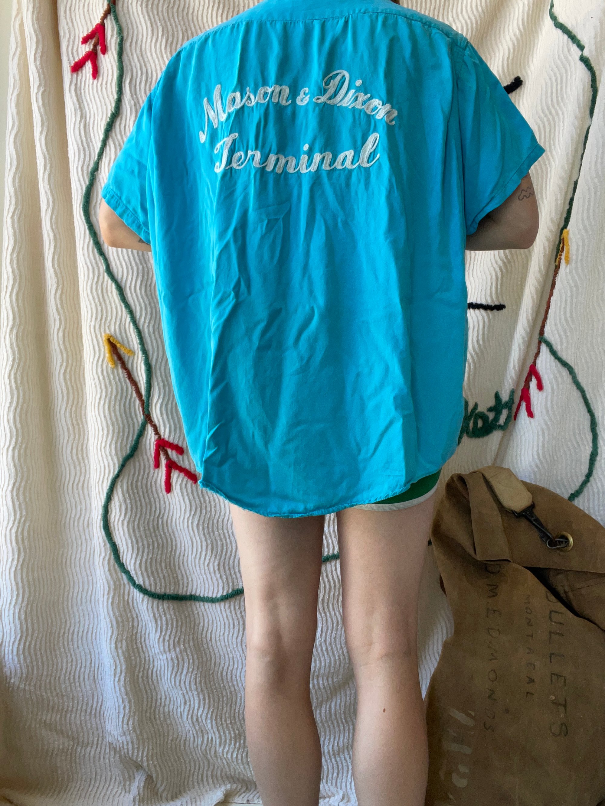 Chain stitched cotton bowling shirt. For the master bowlers. Nice flowy boxy fit.