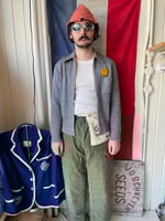 1950's knit sweater with dagger collar. Astro zipper. Zipper is tearing at the bottom but still works fine.