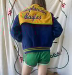 Roberta’s chain stitch wool varsity jacket with snap buttons.