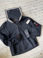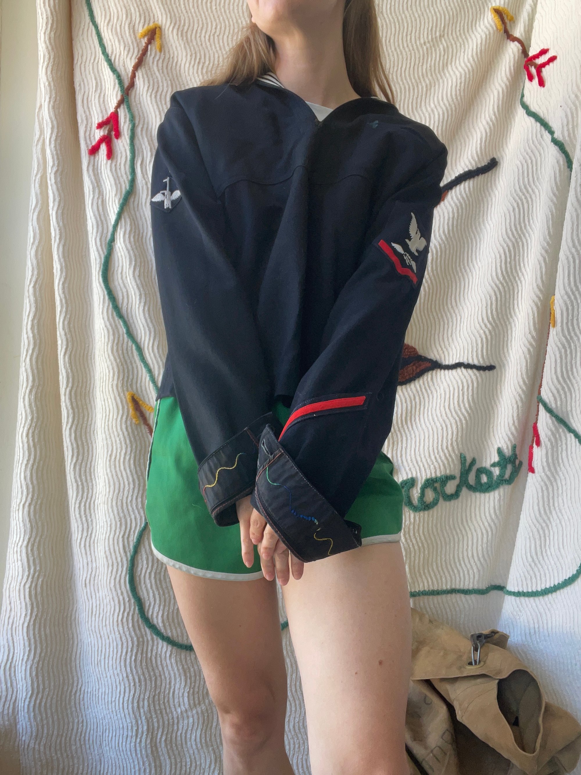 Wool navy sailor uniform with chain stitching inside the cuffs and back.