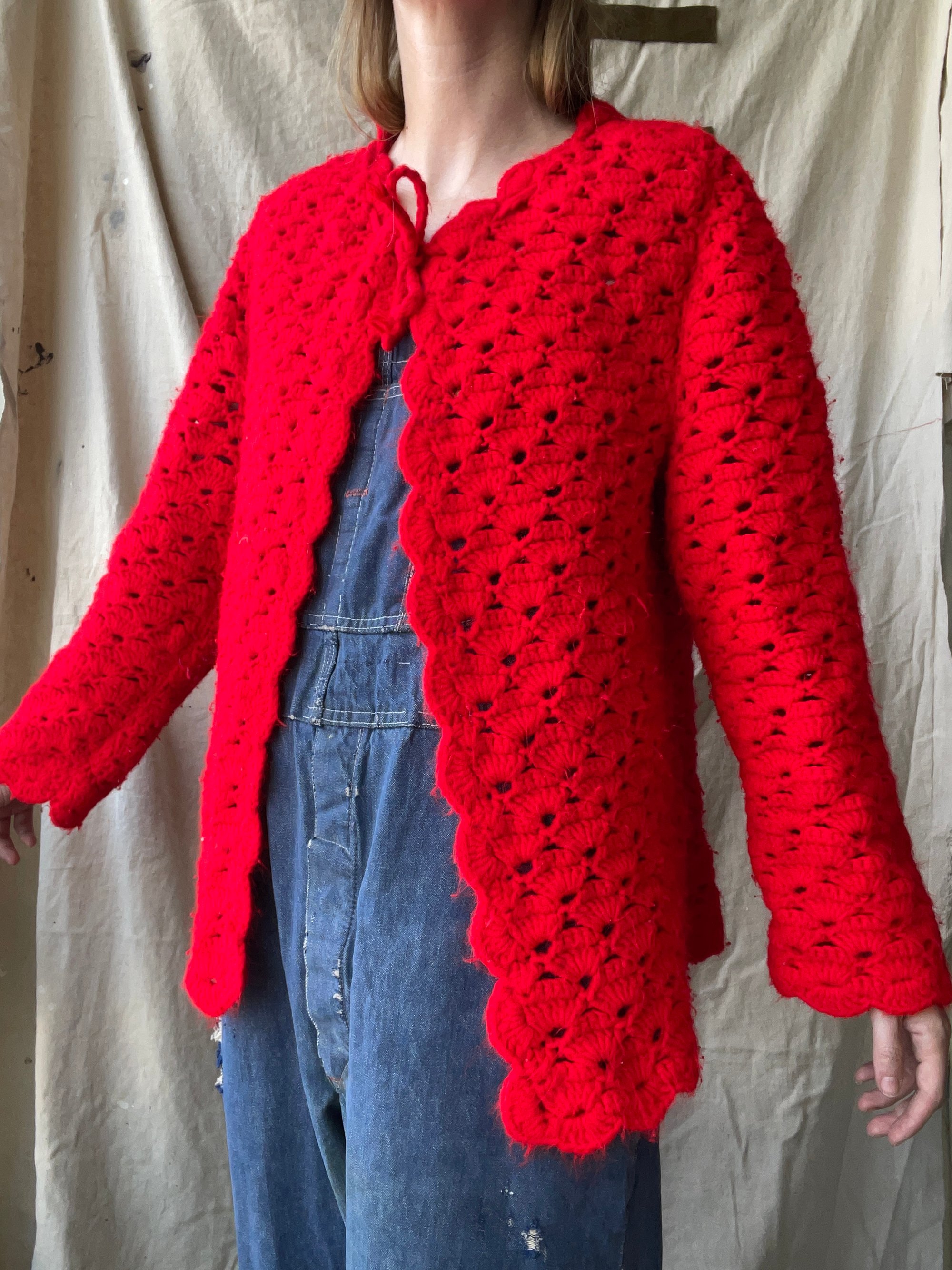 Poppy Red Crochet Sweater